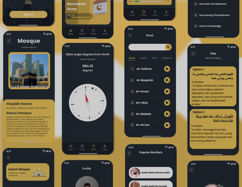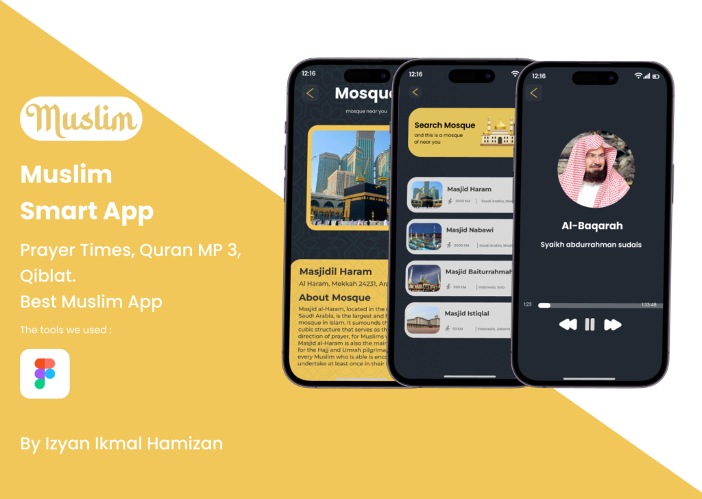 UI UX adalah suatu bahasa desain yg UI itu dimaksud user interface dan ux itu user experience, dan disini saya membuat desain UI UX di figma bertemakan muslim smart app yang berisi home page, lokasi masjid, jadwal adzan, kiblat, profile, Al Quran, doa, dan dzikir