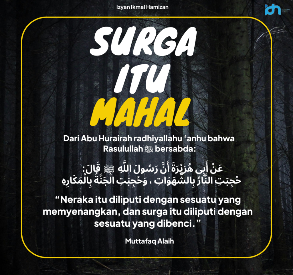 Assalamualaikum warahmatullahi wabarakatuh, oke this is my project Hadist about jannah is expensive, and i make it 1 weeks because my teacher say this not same with the example and i not give up iam always try and try again until get approve from my teacher and i make it in application the app is figma