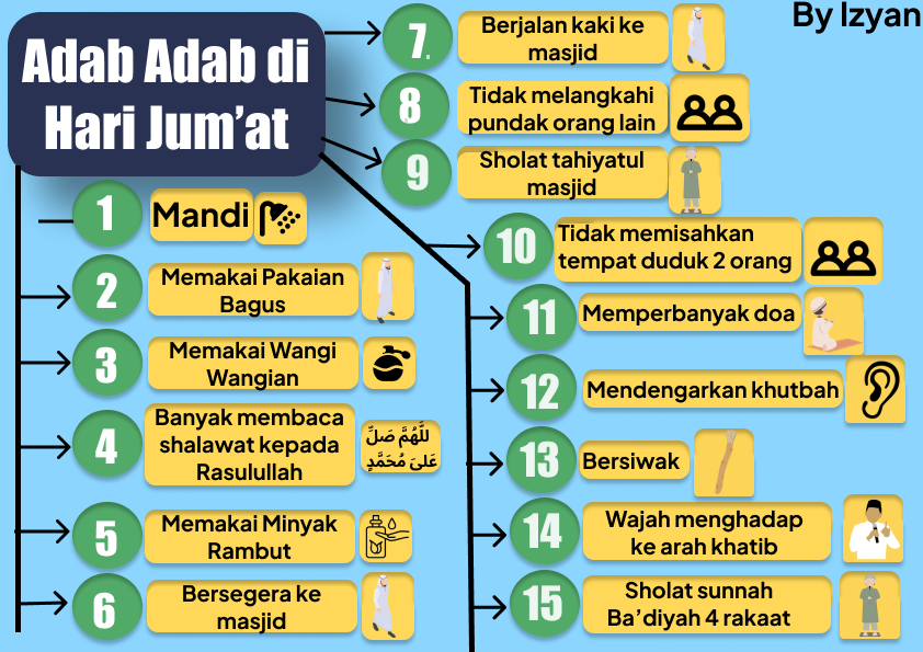 Assalamualaikum warahmatullahi wabarakatuh, oke jadi ini adalah poster mindmapping dari pelajaran fiqih yang bertemakan tentang adab adab di hari jumat, dari mandi sampai sholat sunnah badiyah 4 rakaat dan saya membuat poster ini selama 2 mingguan karena bnyk mendapatkan revisi dan saya menggunakan platform figma.