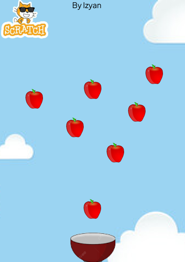 Hello Everyone, today i want show my first Project in Semester 1 the game is Catching Fruit this game made by Scracth and how to play it you must catch the fruit from the sky and how to control the bowl is use left arrow ot right arrow